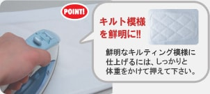 ●アイロンを直接当てる際は、体重をかけてアイロン全体でしっかりと押えて下さい。