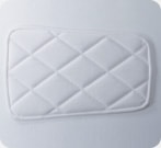 内側からパッドの部分にアイロンを当てていきます。アイロンは、動かないように、出来るだけ強く体重をかけて、一ヵ所10~15秒を目安に、順次パッド全体を押えて下さい。 ※ストライプ柄・ナイロンの入っている生地の場合は、中温で一ヵ所60秒押えて行って下さい。 ※しっかりとパッドが貼り付いているかを確認し、付いていない個所は再度アイロンで押えて下さい。