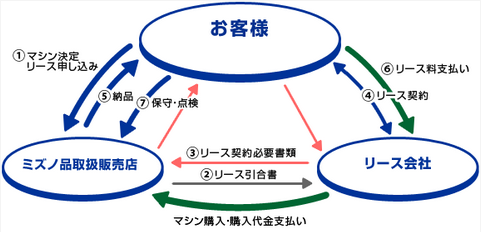 ●リース契約は連帯保証人(原則販売店)が必要ですが、前払金、印鑑届等も省略でき手続きはとても簡単です。