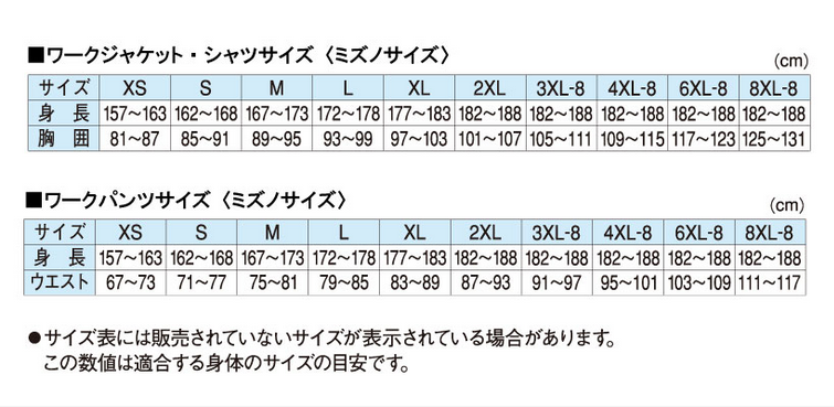 【ワークウエア】サイズについて