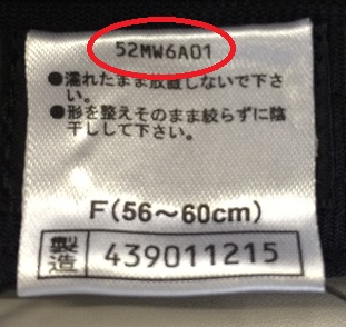2.次に、品質ネームの製造番号を確認してください。ジャケット、パンツは9桁の製造番号が「221451115」「221451215」、キャップは同「439011215」の製品が対象となります。但し、製造番号右横に●印があるもの、これ以外の製造番号のものは、検査済みの製品で対象外となります。