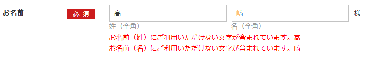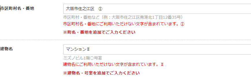 お客様にはご不便をおかけし誠に恐縮ではございますが、該当する場合は、環境依存文字を使用せず、代替の文字へのご変更をお願い申し上げます。
